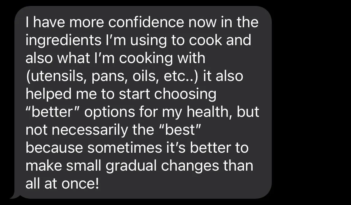 "The information is digestible and empowering without making you feel guilty! I love how quick the videos are and can easily squeeze them in during my day! Aliya really breaks down how toxic chemicals can affect our bodies and how to find ingredients that work best for us."